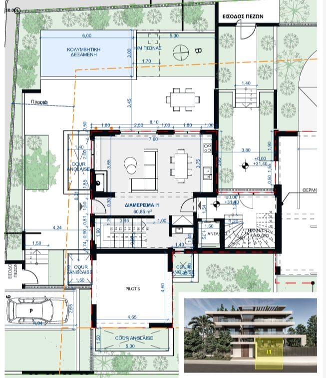 ⋄ Stepping outside, the private swimming pool (18 sq.m.) invites you to unwind in absolute serenity, while the expansive patio and lush garden create a perfect setting for al fresco dining, social gatherings, or quiet moments of reflection.