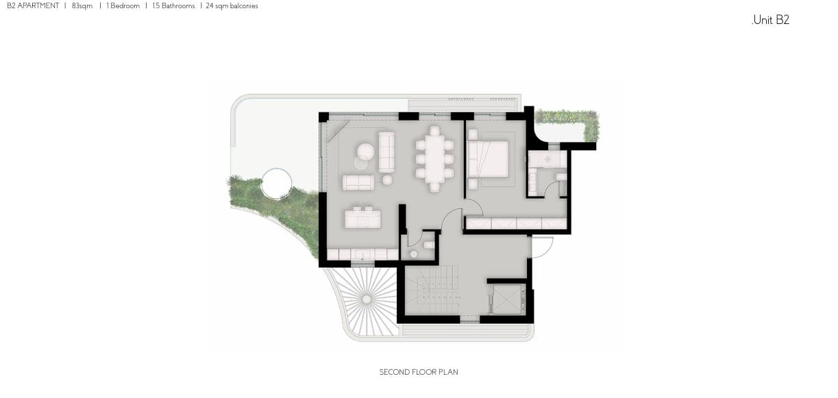 Occupying 83 sq.m. on the second floor, this residence offers an intelligently designed layout that balances openness and privacy, comfort and quality.